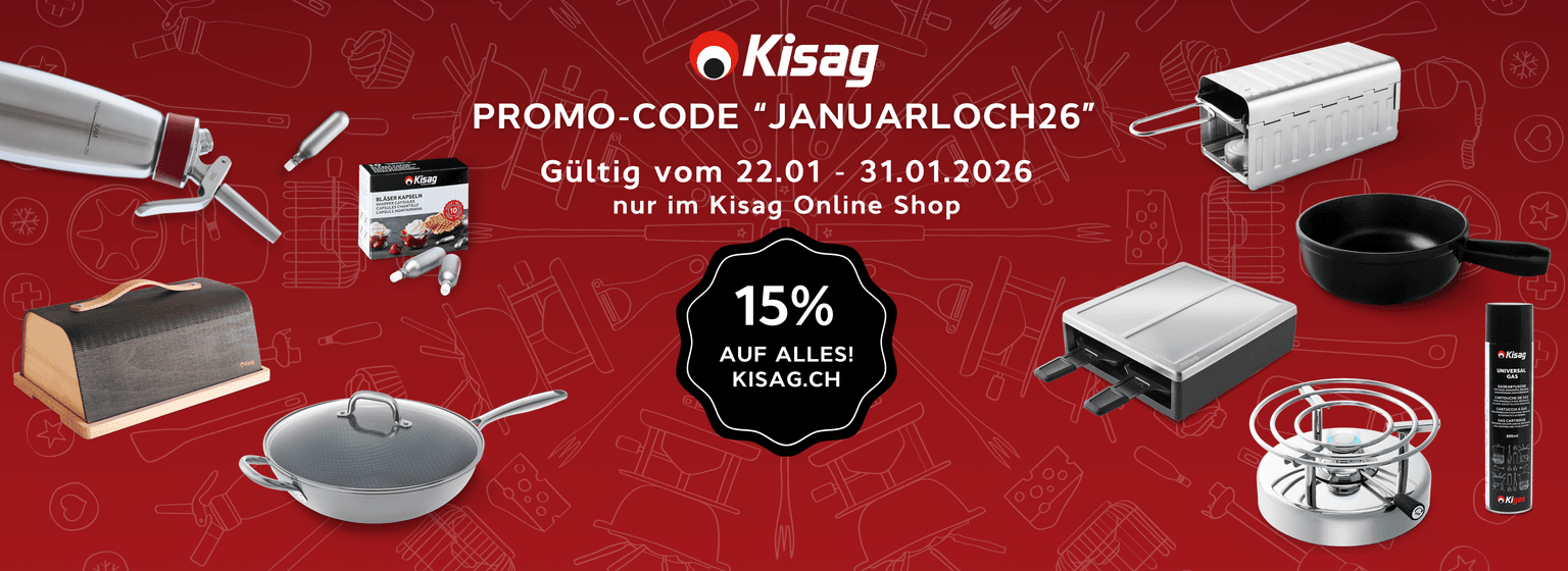 Kochen ist mehr als eine Fähigkeit - es ist eine Kunst. Im Webshop, Fabrikladen in Bellach sowie im Detail- und Fachhandel finden Sie mehr als 200 Kisag-Produkte, die Freude am Rüsten, Kochen, Backen und Geniessen machen: Von Whippern, Fondue- und Raclette-Sets, Sicherheitsgasbrennern, Rechauds, Caquelons, Küchenwerkzeugen aus Silikon, Holz und Edelstahl bis hin zu Profigeräten. Mit Kisag macht Kochen einfach mehr Spass, ob gemeinsam mit Freunden am Tisch, beim Camping, Outdoor oder in der Gastronomie.