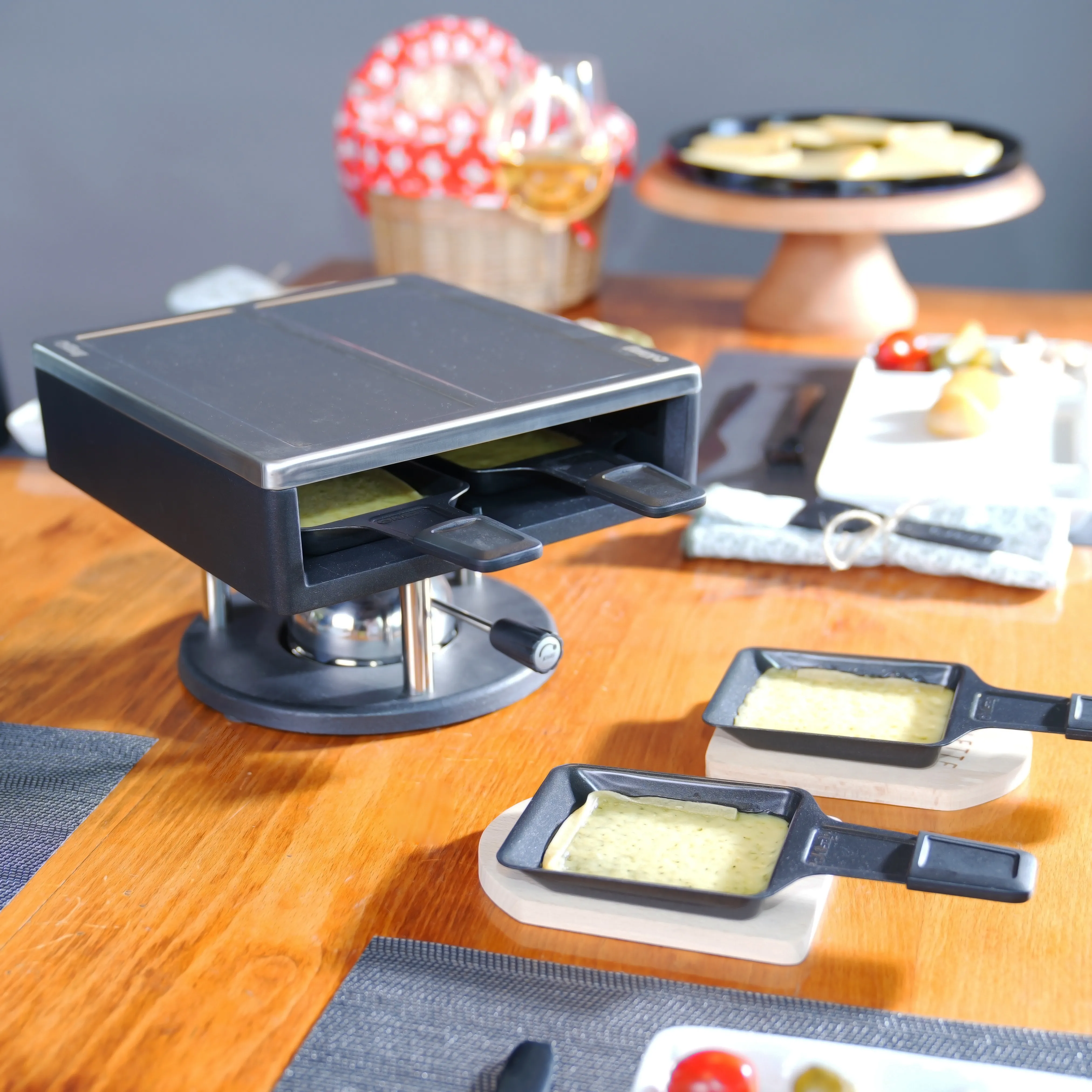 Bestehend aus dem Rechaud Black Cast, dem Raclette-Aufsatz SIERRE, 4 Raclette Pfännchen und 1x KIGAS Nachfülldose 600 ml bietet dieses Set alles, was es für das perfekte Raclette mit Freunden braucht.